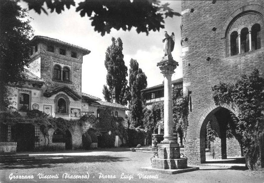 Veduta della Piazza Gian Galeazzo Visconti. Sulla Cartolina è errata la scritta "Piazza Luigi Visconti"